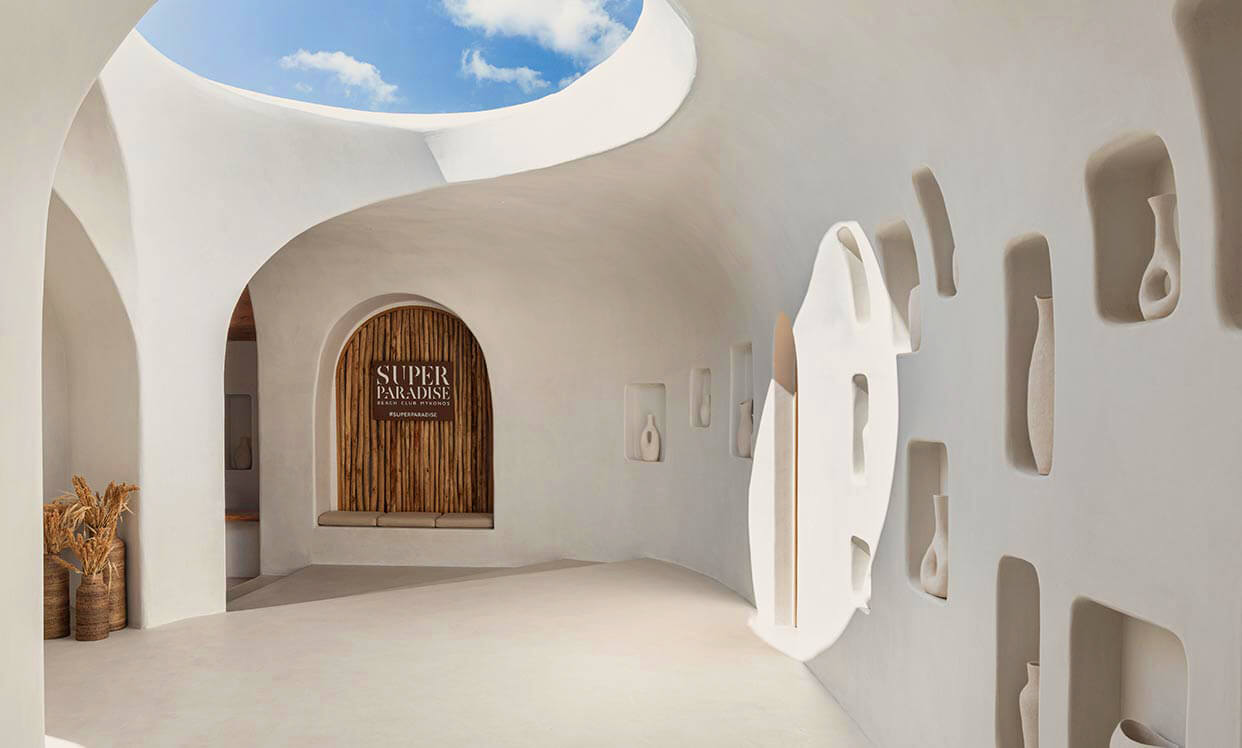 Paradise Beach Club es uno de los más legendarios de Mykonos, famoso por sus fiestas al atardecer y su atmósfera cosmopolita.